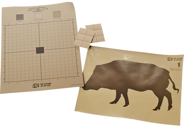 The innovative boar thermal target lets you practice usage of your device.The pasters allow you to reuse the targets and get the most out of the package.Universal thermal target to get your scope zeroed and ready to go quickly.Includes one boar thermal training target, one universal thermal training target and 12 thermal plasters.