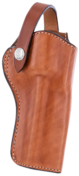 The sleek, 1l lawman holster is designed for hi-ride carry with single-action revolvers.Constructed of full-grain vegetable-tanned cowhide, it features clean lines that deliver the classic look and feel of traditional western holsters.The front strap closure wraps behind the hammer, offering secure retention.The holsters fold over belt loop is made for 1.75 in.(45 mm) to 2.25 in.(58 mm) belts and holds the revolver at an optimum drawing angle while riding in vehicles or on horseback.Meticulously crafted, the 1l lawman holster is suede lined with ivory stitching and has an open muzzle.This model is compatible with colt new frontier 22 and peacemaker with 6.5" barrel.