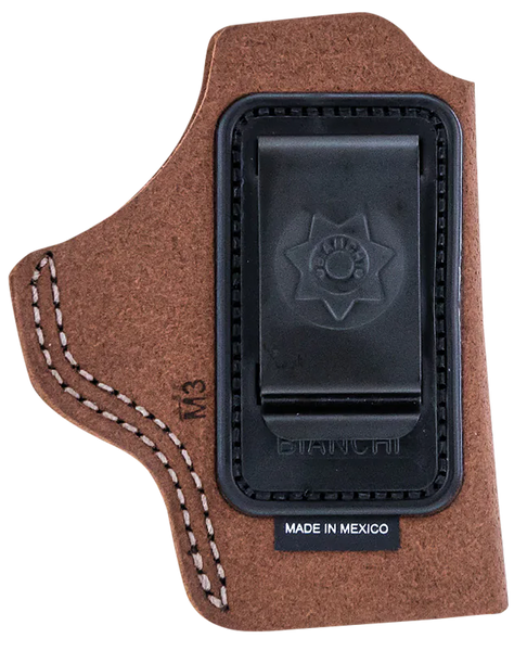 Bianchi's waistband holster is ultra-thin, lightweight, and ideal for casual carry.The soft suede, double stitched construction makes this a comfortable holster with a heavy-duty spring steel clip that fits up to 1.75" belts and an adjustable thumb break.Fits glock 19/23/26/27/36.