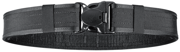 The bianchi 7200 nylon duty belt features a five part laminate construction for extra durability.It has a ballistic weave fabric outer and hook and loop lining, with foam center, and a stiffener sandwiched between.There are two layers of closed cell foam for support and comfort.The tri-release shatter resistant, polymer buckle provides added security.It is 2.25" (58mm) in width.Belts are 2" (50mm) oversized to accommodate liner belt and padding.