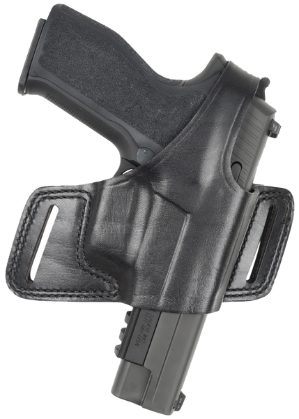 The black widow belt slide holster is worn on the hip and offers an ultra hi-ride carry and a thumb snap closure.The dual belt slots provide stability, and its open muzzle design offers pistols of the same model with different barrel lengths.Its compact profile and widely spaced belt slots allow the pistol to ride close to the body for both comfort and concealability.