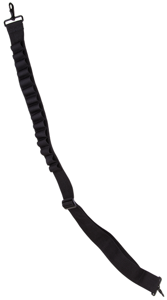 The adjustable two-point shotgun shell sling is designed to carry 15 extra shells for quick access.It is constructed of a high-quality 2" wide nylon webbing with elastic straps.The sling attaches to standard sling swivels with durable steel spring hooks.Design: Adjustable Two-PointType: Shotshell SlingSwivel Size: Any w/Standard StudLength: AdjustableWidth: 2"Color: BlackMaterial: NylonIncludes: 15 Shell LoopsGun Manufacturers: Any Shotgun w/StudGun Style: ShotgunView more