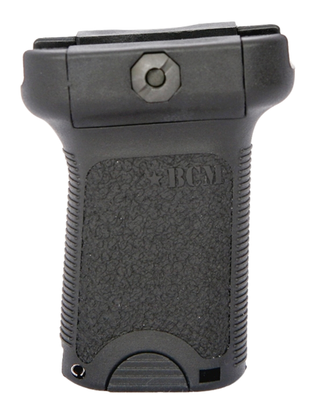 This vertical short grip has a low-profile length for increased mobility and decreased "snag" factor.The forward angle increases the rigidity of the forearm, while providing a more natural wrist angle.Its aggressive texture and storage volume combined with modular design allows for improvements and adaptation in the future.Included is a cross bolt designed to work with improvised tools to allow for easy adjustment or re-tightening, reversible clamps which allows users to set up fasteners to reside on either side, and a spring-loaded clamps that makes installation and removal easier.