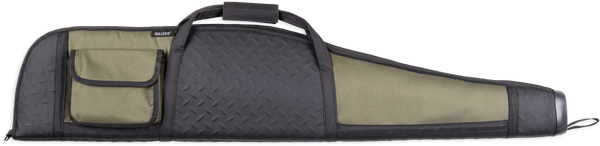 Bull dog's plus rifle case is made of a durable, water-resistant nylon with soft, extra thick protective padding and scratch-resistant inner lining.Features armor pvc panel for extra protection, full length zipper w/custom pull, velcro exterior accessory pocket w/internal cartridge loops and a deluxe padded adjustable shoulder strap.