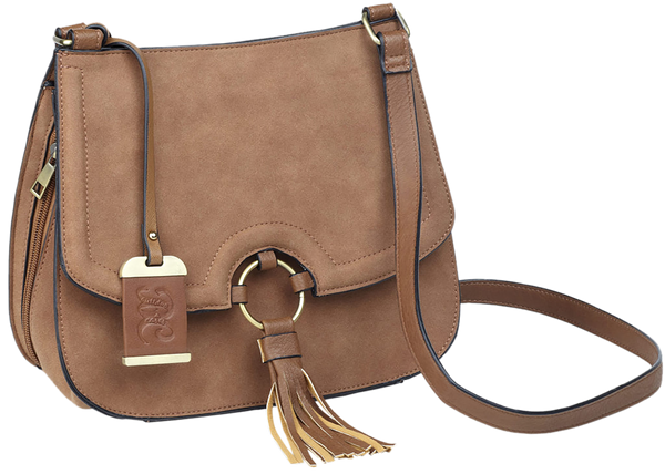 Bulldog's cross body style purse features two separate main compartment with multiple inner pockets and a top flag with magnetic closure.It has a fully adjustable carrying strap and fits most small autos and revolvers.Measures 11" x 9" x 3.5".