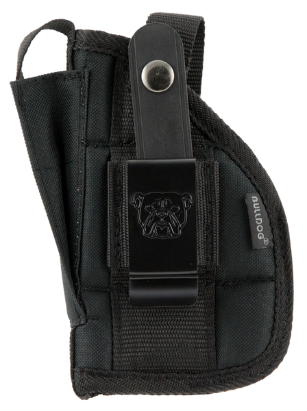 Bulldog's extreme holsters have four wall construction.The outer wall fabric is heavy-duty, water-resistant nylon and the inner wall has a vinyl vapor barrier with deluxe padding and a soft, scratch-resistant fabric.It has a spine protector to keep gun sights from tearing the inner lining.Compact auto's w/2.5-3.75" barrels w/laser or light.Type: Belt HolsterColor: BlackMaterial: NylonSize: Sz 19Hand: AmbidextrousFinish: TexturedFirearm Fit: Ruger LC9Mount Type: Belt Loop/ClipGun Type:...View more