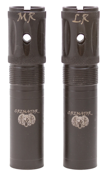 Carlson's cremator choke tubes feature our new triple shot technology and is offered in close mid and long range constrictions.Tst is a series of three graduated rings in the taper section of the choke tube, that allow a more gradual transition from the shotgun bore to the final constriction.The cremator offers reduced pellet deformation, less flyers, more dense patterns, wrench-less installation, quick removal and muzzle protection.Made in the usa.*note- optima hp and remington pro bore long range cannot be used with any steel shot larger than #2.