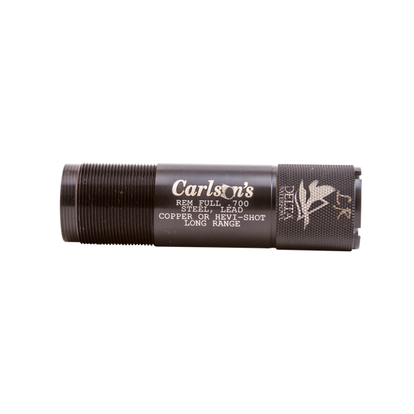 Carlson's delta waterfowl extended choke tubes are manufactured from 1704 stainless steel and designed to throw tighter and denser patterns than conventional choke tubes.These choke tubes feature a 25% longer parallel section in the choke, thus throwing more consistent patterns.Each choke tube is knurled on the end to allow for quick and easy removal.Each choke tube has the constriction and size laser marked on the end and body for easy reference.A steel shot may be used through these choke tubes with exceptional results.