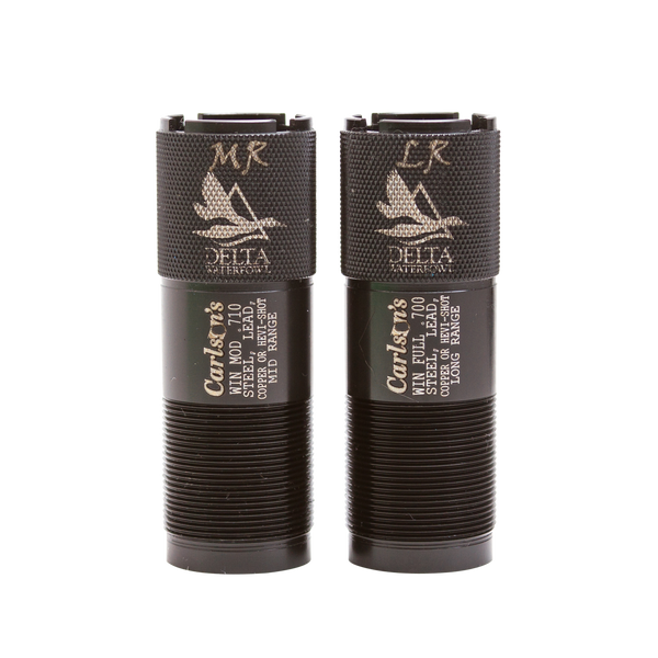 Carlson's delta waterfowl extended choke tubes are manufactured from 1704 stainless steel and designed to throw tighter and denser patterns than conventional choke tubes.These choke tubes feature a 25% longer parallel section in the choke, thus throwing more consistent patterns.Each choke tube is knurled on the end to allow for quick and easy removal.Each choke tube has the constriction and size laser marked on the end and body for easy reference.A steel shot may be used through these choke tubes with exceptional results.Do not shoot steel shot larger than bb or any steel load faster than 1550 fps through the long range constriction.Loads that exceed this size and speed should be used with the mid range choke tube.