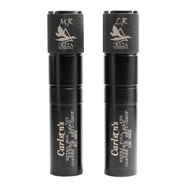 Waterfowl extended choke tubes are manufactured from 1704 stainless steel and designed to throw tighter and denser patterns than conventional choke tubes.These choke tubes feature a 25% longer parallel section in the choke, thus throwing more consistent patterns.Each choke tube is knurled on the end to allow for quick and easy removal.Each choke tube has the constriction and size laser marked on the end and body for easy reference.Steel shot may be used through these choke tubes with exceptional results.Do not shoot steel shot larger than bb or any steel load faster than 1550 fps through the long range constriction.Loads that exceed this size and speed should be used with the mid range choke tube.