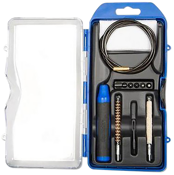 Dac's 22 rifle cleaning kit features a multi-function handle can be used w/traditional rods, pull cords and functions as a screwdriver handle.It includes: two piece solid brass rod, one phosphor bronze brush, one mop, one solid brass jag, one plastic slot tip, 25 cleaning patches, one set of 6 driver bits.The kit comes in a custom molded tray with a clear top dual bond molded tpr locking case.