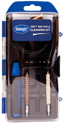 The gunmaster 17 caliber 12 piece rifle cleaning kit includes: custom gunmaster case, hybrid multi-function handle, 33" pull rod, one.17 caliber brush,.17 caliber mop, one.17 caliber slot tip, 25 cleaning patches, six-piece bit set (2 phillips, two flat heads, one star and one hex).