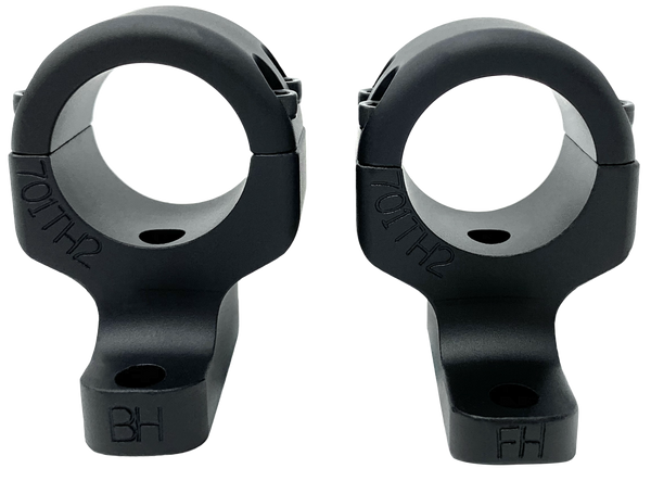 Game reaper 2 signature series two piece scope mounts fit long and short actions, some super short actions, left and right hand guns.Features- machined from a solid block of top-grade billet 6061 t6 aluminum, internal ring and base design allows for extra eye relief adjustment, reduces scope damage from tightening rings, no moving parts between the firearm and the scope, up to four times the threads of other mounts for absolute strength and security and absorbs shock and withstands temperature extremes better than steel mounts at a fraction of the weight.Base screws are 6-48 x 1/4 long.Ring screws are 6-40 x 5/8 long.Both use a 7/64 allen wrench.Both mounts are not the same part.Back mount is taller than front mount because receiver is lower on back end.
