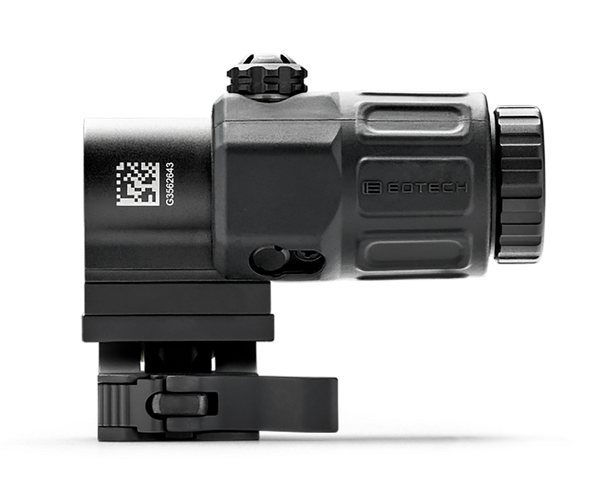 The g33 magnifier is the selected magnifier of ussocom, and is compact and lightweight.The mount provides fast transitioning from 3x to 1x, and the optic offers tool-free vertical and horizontal adjustments, larger field-of-view and an adjustable diopter for improved, precise focusing.The g33 works with all eotech hws models.The quick sts mount twists the magnifier out of the way for shorter range shots, locking in that position until pushed back into place for magnified viewing.The g33 also offers a locking, quick detach lever for the optic and the mount.It aligns with standard-height sights and comes with a 7mm riser to accommodate raised sights.Eotech sts magnifier mount is compatible with g30, g33, g43 and g45 magnifiers.Includes: switch to side mount, 7 mm riser, and mounting hardware.