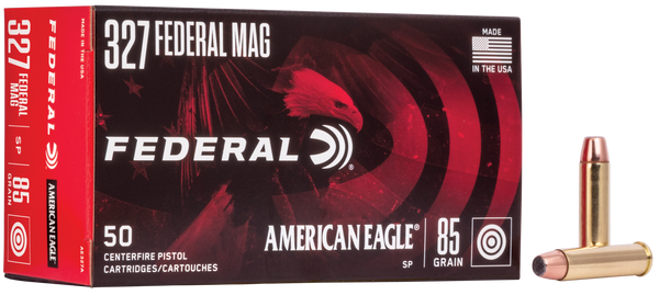 Hit the target and train harder with the proven line of american eagle handgun ammunition.It provides performance similar to self-defense and competition loads for a familiar feel and realistic practice.Caliber: 327 Federal MagBullet Type: Jacketed Soft PointBullet Weight: 85 grMuzzle Energy: 370 ft lbsMuzzle Velocity: 1400 fpsRounds Per Box: 50Boxes Per Case: 20Application: Target ShootingCasing Material: BrassHazair: YesView more