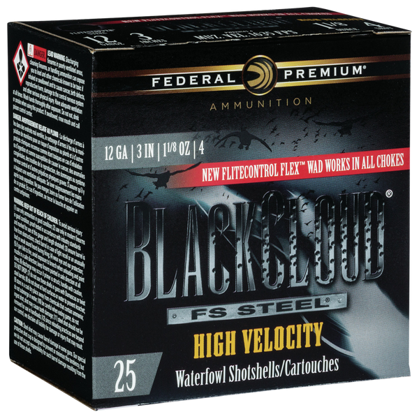 Black cloud fs steel is now equipped with the flitecontrol flex wad to deliver improved pattern density and consistency through both ported and standard waterfowl chokes.The wads redesigned rear-deploying petals and side-mounted vents stimulate the payload for separation from the wad at the ideal moment for dense, deadly patterns.Plus, the high-performance primer and clean-burning, temperature-stable propellant significantly decrease residue in the barrel.Application: HuntingGauge: 12 GaugeType:...View more