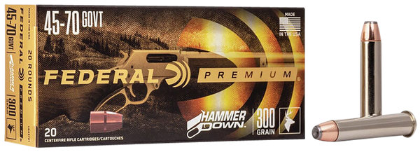 Velocities of federal premium hammerdown loads are customized to produce superior ballistics and terminal performance through lever-action barrel lengths.The construction of the molecularly bonded soft point bullets has also been adjusted for the best accuracy and expansion at those velocities.The geometry of each round's case, bullet and cartridge ensures flawless cycling through tubular magazine and typical lever-action feeding systems.
