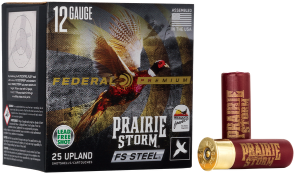 Prairie storm combines federal's flitecontrol flex wad and flitestopper pellet technologies to deliver consistent patterns that put more than 75 percent of their pellets in a 30-inch circle at 40 yards, as well as energy similar to the most popular lead loads.