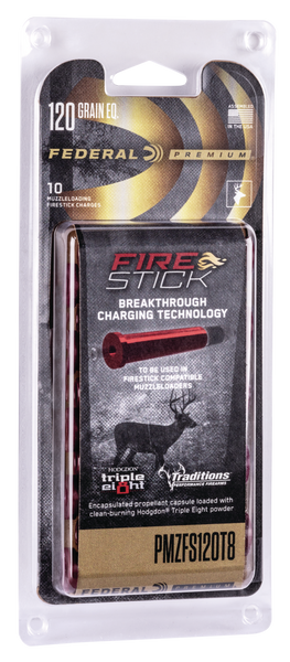 Federal premium firestick is the critical component of a whole new ignition system that uses an encapsulated propellant charge that loads from the breech, with the bullet loaded from the muzzle.The charge is completely impervious to moisture and loaded with clean-burning hodgdon triple eight powder to the same tight tolerances as federal premium factory ammunition.*shooter inserts 209 shotgun primer (not included).