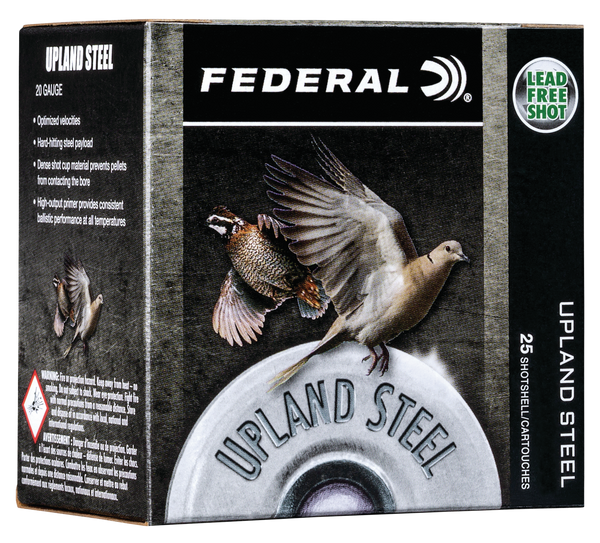 Federal's upland steel serves up the patterns and power hunters need for hard-to-hit birds.The loads are consistent and reliable, with high velocities that make the most of the steel payload.They're the perfect choice for doves and other light upland game, especially in areas that require the use of non-lead shot.