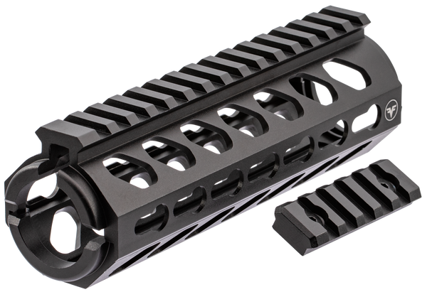 The firefield edge carbine length 2-piece keymod rail merges an aggressive handguard design with an accessory attachment system robust enough to handle every piece of equipment you need on your next mission.This multipurpose handguard and rail system boasts lightweight yet heavy-duty aircraft-grade 6061-t6 hard-anodized matte black aluminum and a precision-machined design.Its simple 2-piece construction allows the rail to be mounted to any drop-in style rail system using virtually no tools.