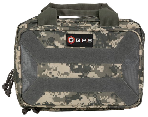The pistol case features a hook & loop front panel, cushioned pistol compartments, and enhanced knitted elastic mag slots which fits model sized mags.It is constructed of 600d polyester with lockable zippers, lockable admin pocket, and lays flat.The pistol pocket has dimensions of 12.50" l x 7.50" h, enhanced magazine slots are 8.50" h x 1.75", and the front pocket is 12" l x 7.50" h x 2"w.