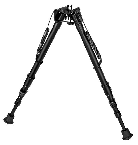 Harris bipods clamp to most q.D.Stud equipped bolt action rifles and have a sling attachment provision.Spring loaded folding legs are quickly adjustable for height.Manufactured with heat treated steel and hard alloys, bipods have a black anodized finish.