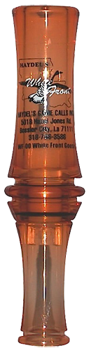 The haydel white front goose call is our speckle belly call constructed with double o-rings and newly designed barrels to produce clucks as well as yodels.