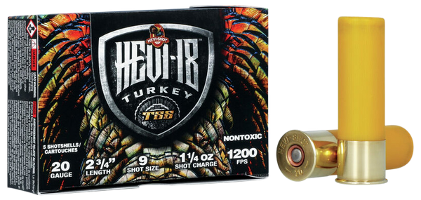 Hevi-shot goes ultra-dense with hevi-18 tss turkey.The 18 g/cc density pellets allow for smaller shot and higher pellet counts for the ultimate in long-range lethality.With hevi-18 being 48% more dense than lead, you can drop down 3 shot sizes for the same down range lethality.