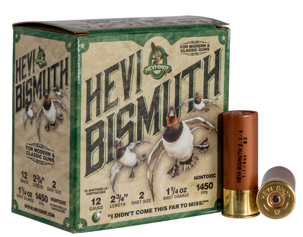 Hevi-bismuth is 22% more dense than steel, which allows you to drop down a shot size for the same lethality.Hevi-shot's bismuth is safe to shoot in modern and classic guns.