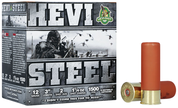 Hevi-shot's hevi-steel delivers major kinetic energy.It features an increase in speed that delivers 9% more energy at 30 yards and 8% at 40.More knockdown power and fewer crippled birds.Combining higher velocity, a best-in-class wad, and precision manufacturing techniques deliver the ultimate in performance.