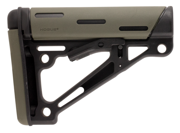 The ar overmolded collapsible buttstock features rubber friction fit for an anti-rattle design which prevents movement.It utilizes a shielded operation lever and swivel mounting positions.This model has an od green finish and is compatible with commercial buffer tube.