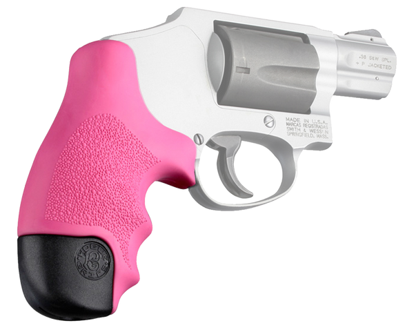 Hogue rubber grips are molded from durable synthetic rubber that is not spongy or tacky, yet provides a soft recoil absorbing feel without affecting accuracy.The flexibility of the materials and molding process produces rubber grips with features that out perform all other makes.It is molded with a reinforcing insert directly engaging with the firearm frame for a rock-solid grip-to-frame fit.The cobblestone texture provides an efficient non-slip, non-irritating stippling pattern.This tamer model has a pink finish and is compatible with s&w centennial with round butt and bodyguard with polymer body.