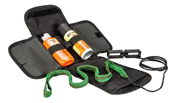The boresnake soft-sided gun cleaning kit includes boresnake, hoppe's no.9 gun bore cleaner, hoppe's lubricating oil, hoppe's weatherguard cloths, and a pulling tool.It comes in a rugged, soft-sided case that attaches easily to a belt and fits compactly into a box or bag for convenient use at the range.Caliber Or Gauge: .30 CalType: Rope Cleaning KitSize: 30 CalPieces: 4Bristle Type: BronzeIncludes: Boresnake/Cleaner/OilCase Material: NylonHazair: YesView more