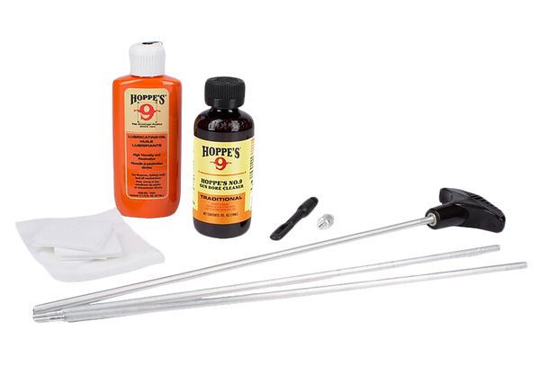 Hoppe's kits aren't just convenient, they're extremely well thought out.Hoppe's cleaning kits include: hoppe's no.9 solvent, 2 oz., hoppe's lubricating oil, 2.25 oz., round cotton patches, slotted ends and adapters (where appropriate), aluminum cleaning rod, a brush to fit your specific gauge.