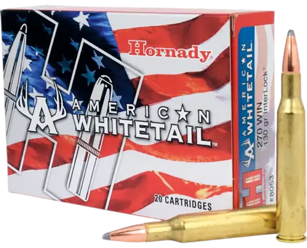 American whitetail exclusively features hornady interlock bullets with exposed lead tip for controlled expansion and lead-alloy core for reliably hard-hitting performance.The interlock ring inside the bullet jacket is embedded into the core, ensuring that core and jacket remain locked together during expansion for maximum mass and energy retention.American whitetail is loaded to conventional velocities, premium propellants are selected to achieve optimum pressure and consistency, ensuring each load is also compatible with semi-automatics.