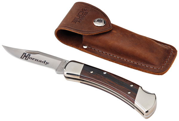 Our 110 folding hunter knife features a macassar ebony dymondwood handle and nickel-plated bolsters.The blade is made of 420 hc stainless steel for years of reliable use