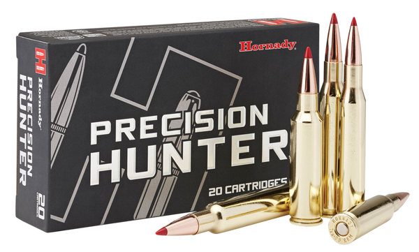 Hornady's precision hunter features a heat shield tip that resists the effects of aerodynamic heating and retains its shape to maintain the highest-in-class bc over its entire trajectory.A streamlined secant ogive with optimum boattail design, highly concentric amp bullet jackets, and heat shield tip combine for radically superior aerodynamic efficiency.With high velocity, 0-400 yard impact.The thick shank of the jacket and high interlock ring work to keep the core and jacket together providing 50-60% weight retention.
