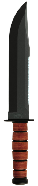 The ka-bar leather handled big brother fixed knife is a force to be reckoned with.This knife features a 9.375" blade that was designed for a lifetime of hard work and constant use.Tang stamped usa.Top edge serration.Includes sheath.Made in the usa.