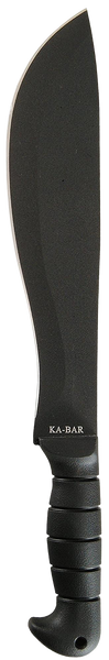 The black cutlass machete is perfect for chopping down weeds, clearing a camp site or cutting small limbs and tree branches.It has an 11" hollow ground blade with a 20-degree edge and is made of sk5 steel.With the ergonomic kraton-g handle, overall length is 16.50".Includes a leather/cordura sheath.