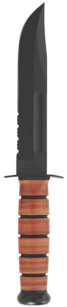 The most famous fixed blade knife in the world "the ka-bar" was designed to serve our troops during world war ii and is still doing its job, with honors, more than 50 years later.Oval-shaped, stacked-leather handle and an epoxy powder-coated high-carbon steel (1095) blade.Tang stamped usmc.Includes sheath.Made in the usa.