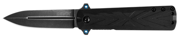 The barstow is a folding dagger and everything about this slim, sleek blade is simple, direct and ready.The straight spear-point blade, sharpened on a single side, is made of 8cr13mov stainless steel with kershaw's black oxide blackwash coating for a non-reflective, "already broken in" look.The handle has glass-filled nylon scales with heavy arrow-patterned texturing to enhance grip.A stout steel liner, also with non-reflective blackwash, provides an equally stout liner lock to secure the blade open during use.The barstow opens quickly and easily with speedsafe assisted opening and the built-in flipper.All the hardware is black with the notable exception of the barstow's tube spacers, which are anodized in blue for a touch of subtle color and eye-catching interest.For convenient and discreet carry, the deep-carry pocket clip enables the knife to ride low in the pocket and is left/right reversible.