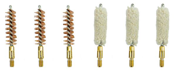 The 6 piece handgun brush & mop cleaning set contains- 3 bronze bristle bore brushes and 3 100% cotton bore mops.