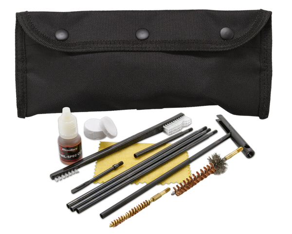 The modular cleaning kit was developed for field use.New modular design allows to work with molle system.Multi caliber 5.56/223/m4/ar15/m16.The kit includes a military style t-handle with sections for 30" length; black modular pouch; rod accessory adaptor to accept #8-32 adapter for threaded accessories; pro-shot mil-spec clp 1/2 squeeze bottle; double-ended nylon cleaning brush; 5.56/223 phosphor bronze bore brush #8-36 thread;.56/223 phosphor bronze chamber brush #8-36 thread; steel patch holder; kleenbore #10 bio mil-spec clp 0.25 oz.Bottle; silicone cloth and cotton cleaning patches.