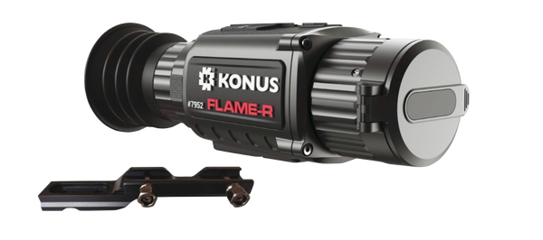 The konus flame-r features 5 selectable reticles in three different colors (green/white/red); four selectable palettes- black hot/white hot/red hot/fusion and built in wi-fi hot spot.Includes two cr123a batteries and a picatinny rail mounting system.