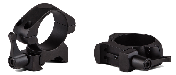 A complete assortment of high quality steel mounting rings for riflescopes.These rings are suitable for weaver / picatinny rail.Features torx screws and square recoil lug.They are also supplied with the quick release system: a lever for quick attach and detach.