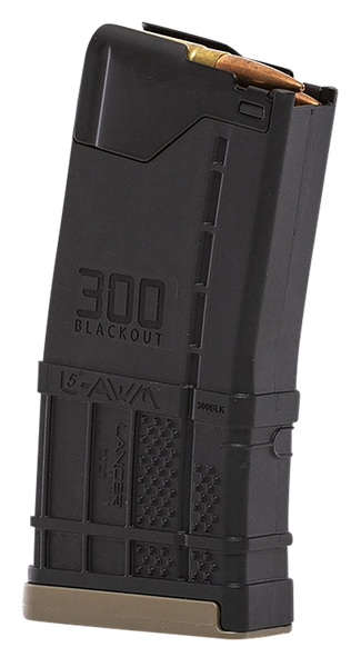 The l5awm 300blk magazine has been specifically engineered for use with heavy subsonic.300 blackout ammunition, particularly with 200+ grain projectiles.The updated internal magazine geometry allows these longer heavier bullets to stack properly, which increases feeding reliability when compared to a traditional.223/5.56 magazine.The outside of the mag body is molded with distinctive.300 blackout markings and the magazine ships with a contrasting flat dark earth floor plate for easy visual identification.