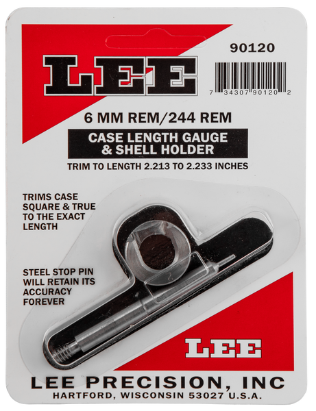 Lee 6mm rem / 244 rem case length gauge is a precise, easy way to trim to length and square the case mouth.Used with the cutter and lock stud or zip trim.Trim to length 2.213 to 2.233 inches.