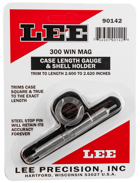 Lee 300 win mag case length gauge is a precise, easy way to trim to length and square the case mouth.Used with the cutter and lock stud or zip trim.Trim to length 2.600 to 2.620 inches.