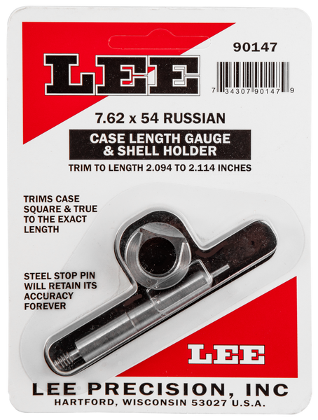 Lee 7.62x54 russian case length gauge is a precise, easy way to trim to length and square the case mouth.Used with the cutter and lock stud or zip trim.Trim to length 2.094 to 2.114 inches.